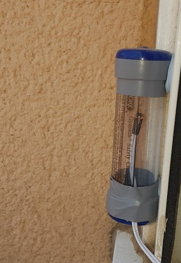 Con ese alargo, he podido poner el sensor fuera de la ventana de casa, dentro de una cilindro transparente de plástico para que no se moje con la lluvia y así el sensor trabaja siempre con la luz solar. El cilindro, al pesar muy poco, he podido pegarlo al marco de la ventana con «», pero eso ya va a gustos y facilidades de cada uno.