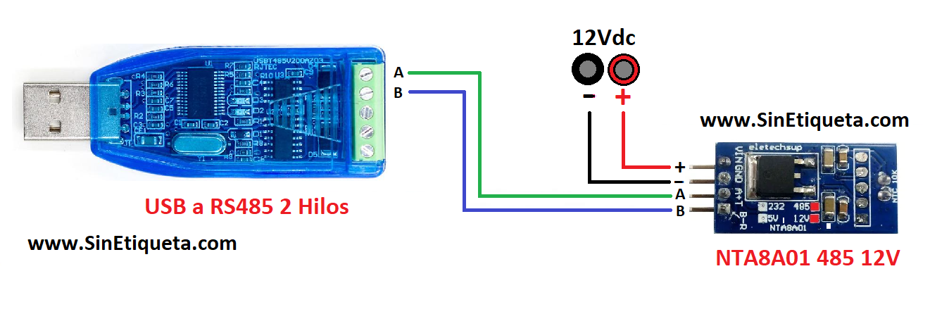 Una vez lo tenemos todo, solo tenemos que Alimentar el módulo (con la sonda de Temperatura conectada) a 12Vdc (también hay otras versiones a 5Vdc), y las comunicaciones según en siguiente diagrama: